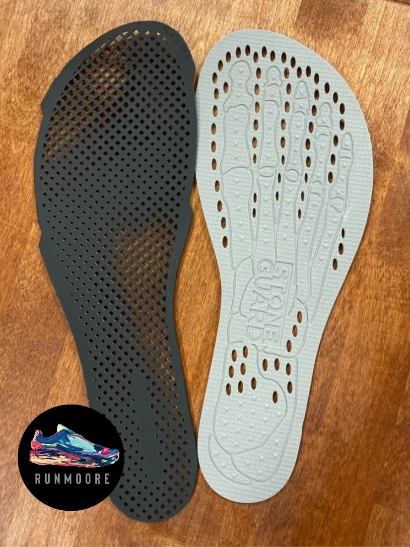 This was the stone guard that had been in previous Superiors. This would come outside, and you can put it underneath the insole and give yourself a little more protection. This has been the same one throughout the years. They have now updated it. You can see it has different density levels like it is thicker on certain spots where you might be putting more pressure where it might need a little bit more. It has targeted protection in the stone bar.